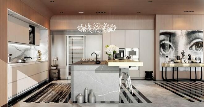 Частым элементом в кухнях арт-деко становится остров, который оформляют либо как рабочую зону с варочной поверхностью и мойкой, либо как обеденное место для двоих.