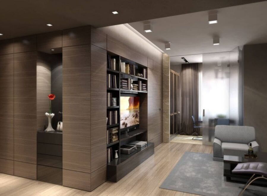 Если вам нужно максимально комфортное и функциональное жилье, то лучше обустроить квартиру в стиле модерн. Проект дизайн ремонта двухкомнатной квартиры в стиле модерн, как на фото, обычно сосредоточен на зонировании помещения. С помощью перегородок или мебели создаются рабочие зоны: кабинет, зона отдыха, детская и другие.