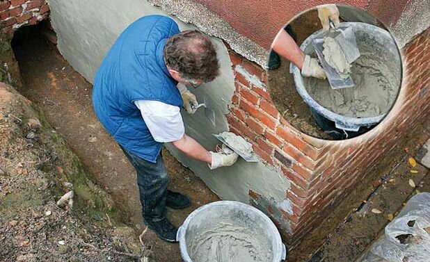 Для максимальной изоляции проводится нанесение битумного слоя, толщиною приблизительно в 4 мм. Он не будет пропускать влагу и дополнительно защитит шпаклевку.